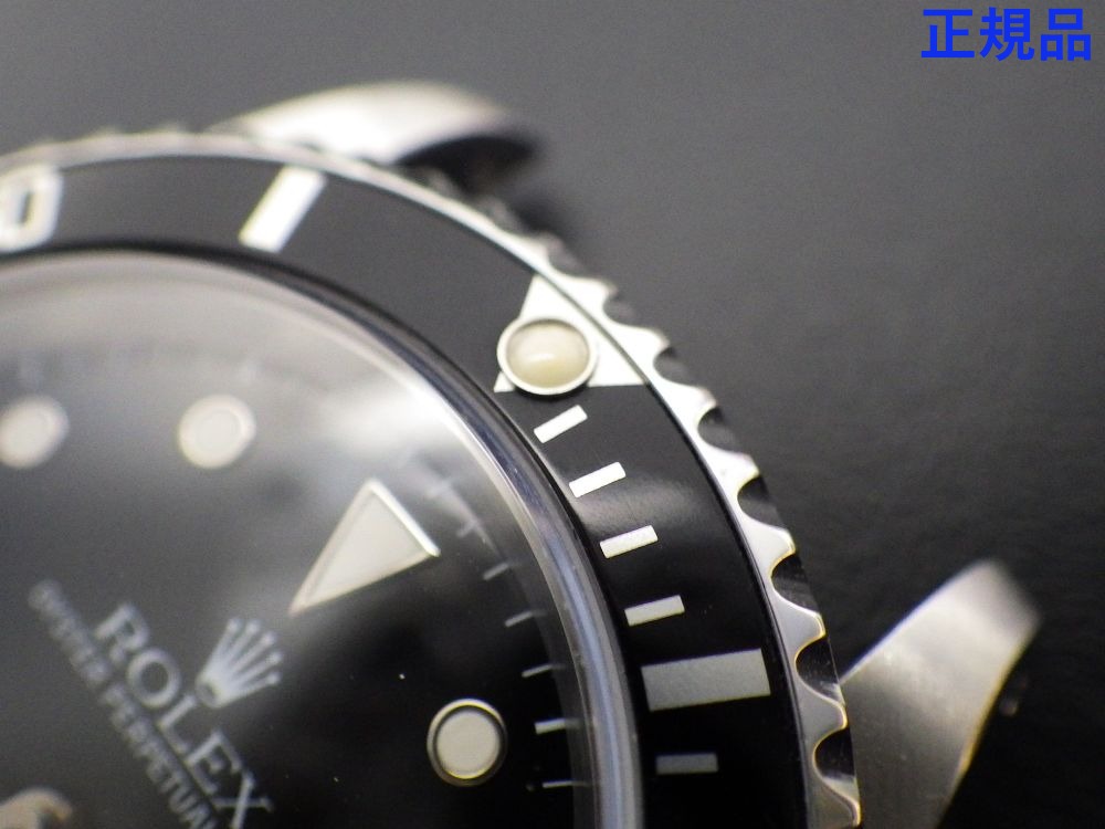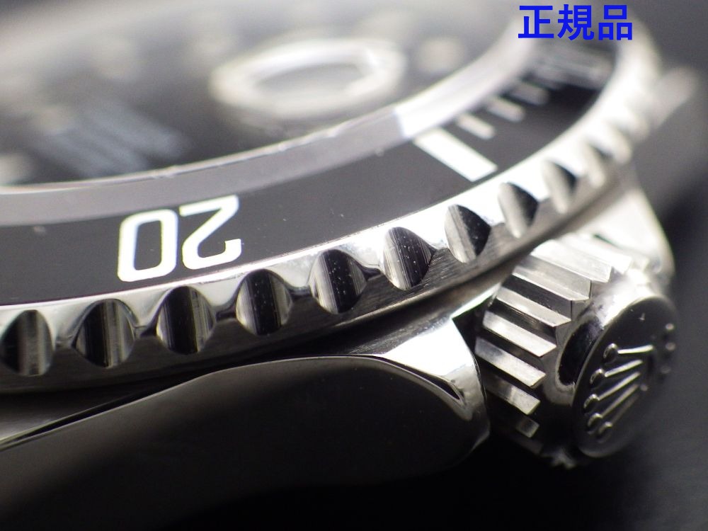 正規品:ベゼルディスク(黒い印字プレート)に対して緩やかな傾斜、各溝も繊細に造られている