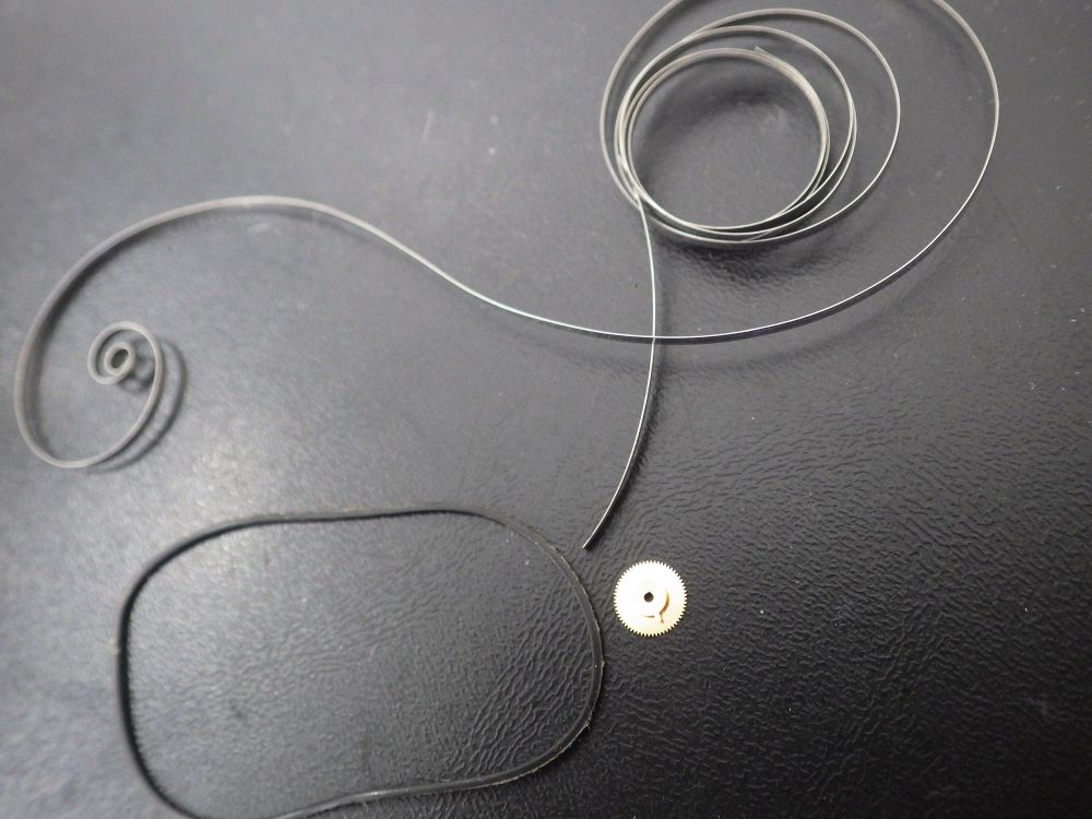 ムーブメント内部油切れ状態でした。 動力源のゼンマイが劣化し時計の動きが弱くなっていました。 曜日カレンダー車が破損していましたので交換いたしました。 カレンダーの操作禁止時間帯(20:00~04:00)にカレンダー送りをするとカレンダー周辺の歯車が変形、破損する原因になります。カレンダーの早送りは禁止時間帯を避けていただくようご案内いたしました。時計上のお時間を06:00(もしくは18:00)に合わせてからカレンダーの調整を行っていただくことを推奨しております。
