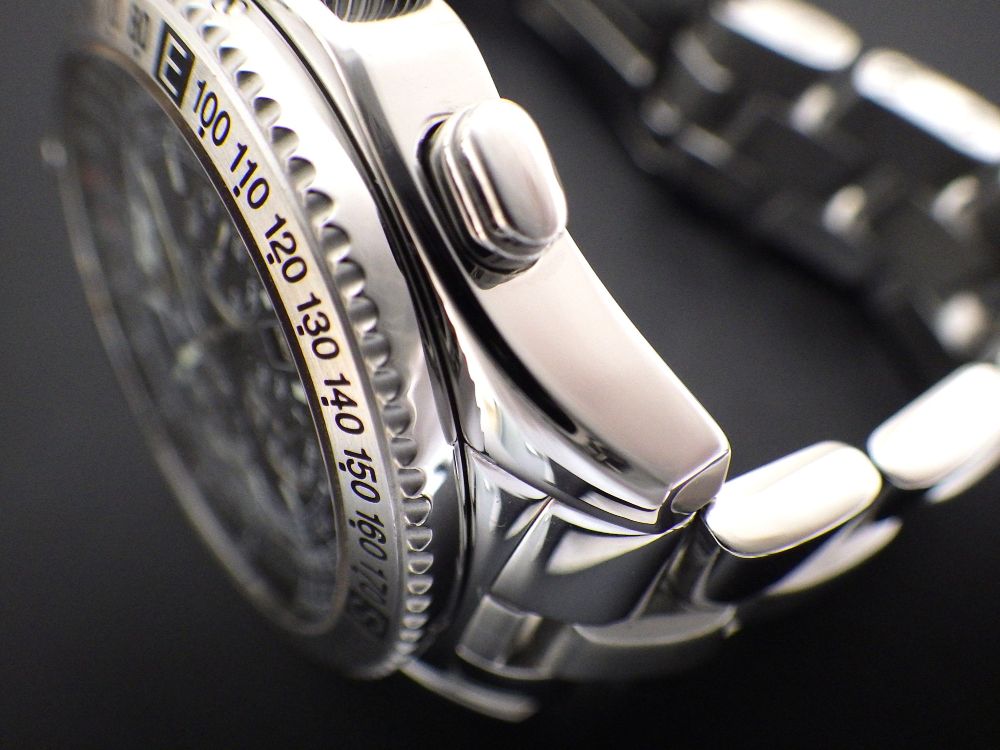 ムーブメント内部油切れ状態でした。 動力源のゼンマイが劣化し時計の動きが弱くなっていました。 自動巻きの主要歯車(リバーシング)が摩耗し円滑に動作していませんでした。 止まりの原因となりますので交換いたしました。 プッシャーの動作不良は汚れの除去と注油で改善いたしました。