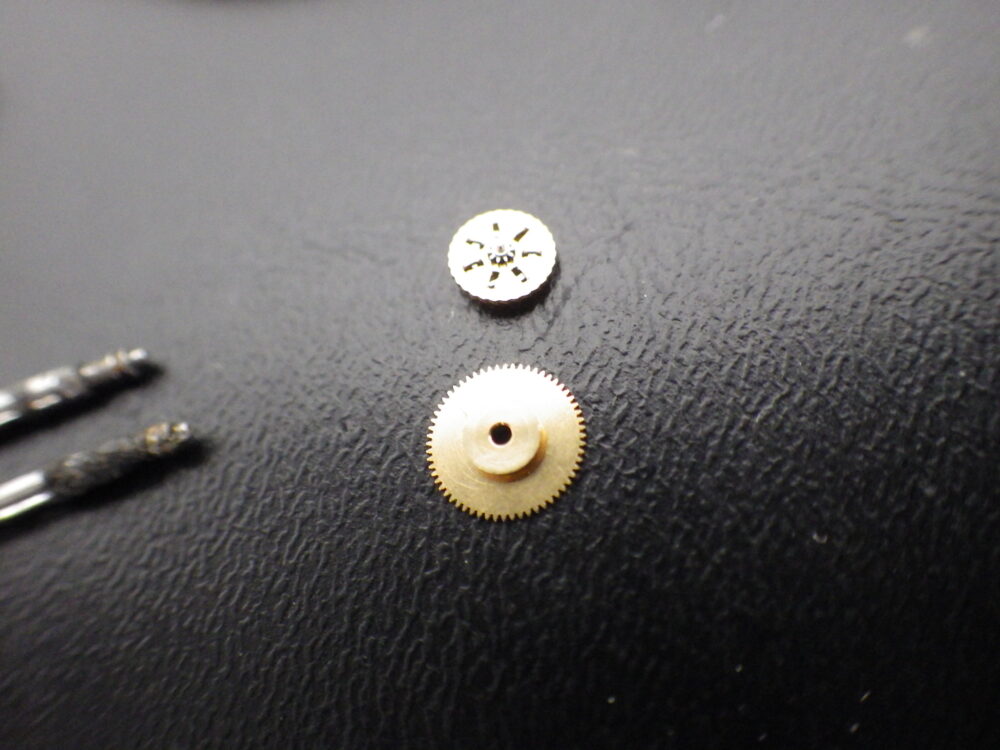 ムーブメント内部油切れ状態でした。 ゼンマイ切れによる止まりでした。 自動巻きの主要歯車(リバーシング)が摩耗し円滑に動作していませんでした。 カレンダー車が破損していました。 4時プッシャー欠損、2時位置も内部にさびが発生していたため交換いたしました。